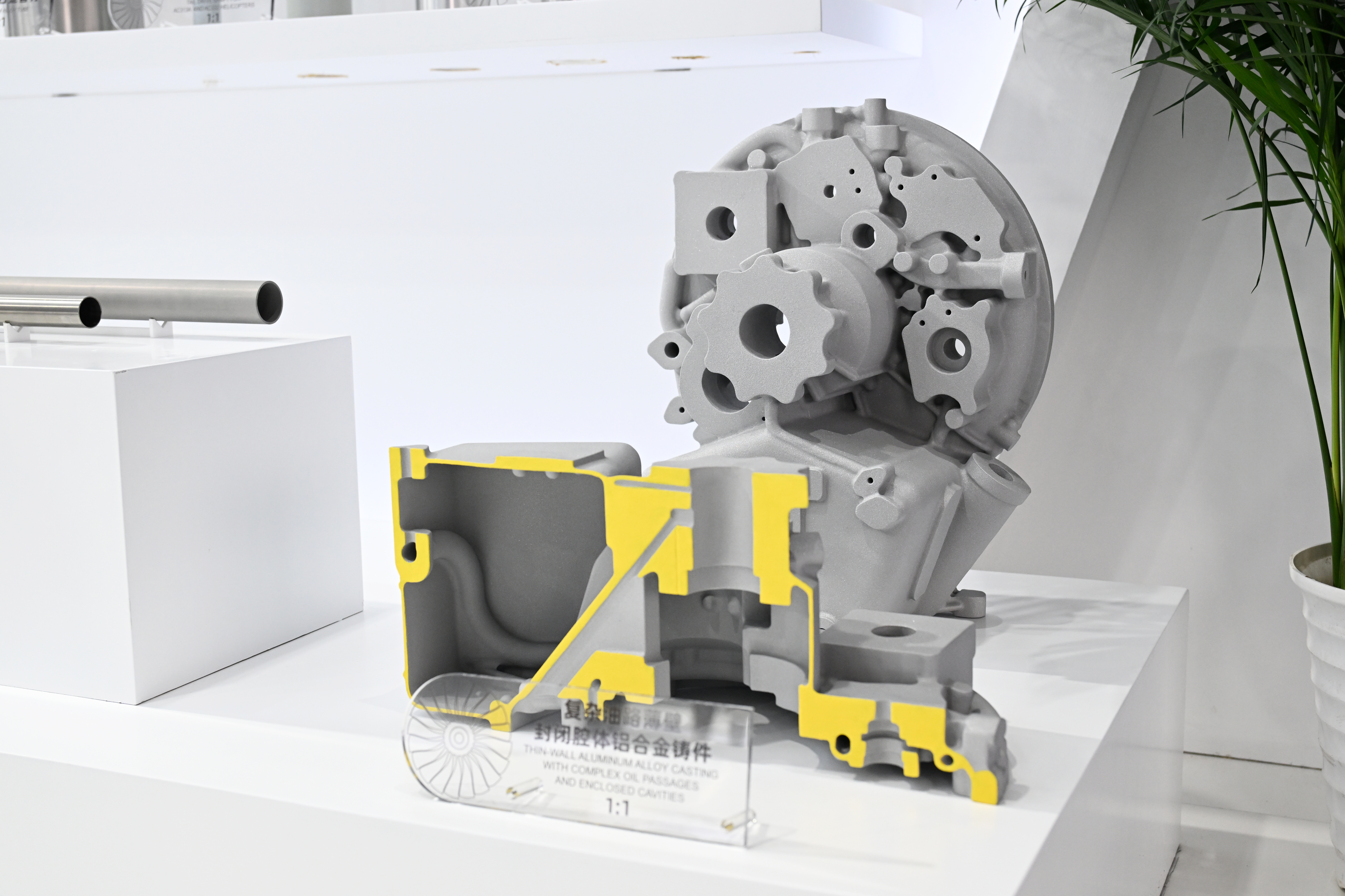 复杂油路铸件采用铝合金铸造,内部油路多达17条,主体壁厚仅4mm,最细油路直径仅为6mm,油路走向遍布整个铸件本体。铸件采用一体成型、可变充型、可控凝固以及全尺寸智能监测等创新性技术,实现了复杂油路薄壁封闭腔体铝合金铸件一次合格。