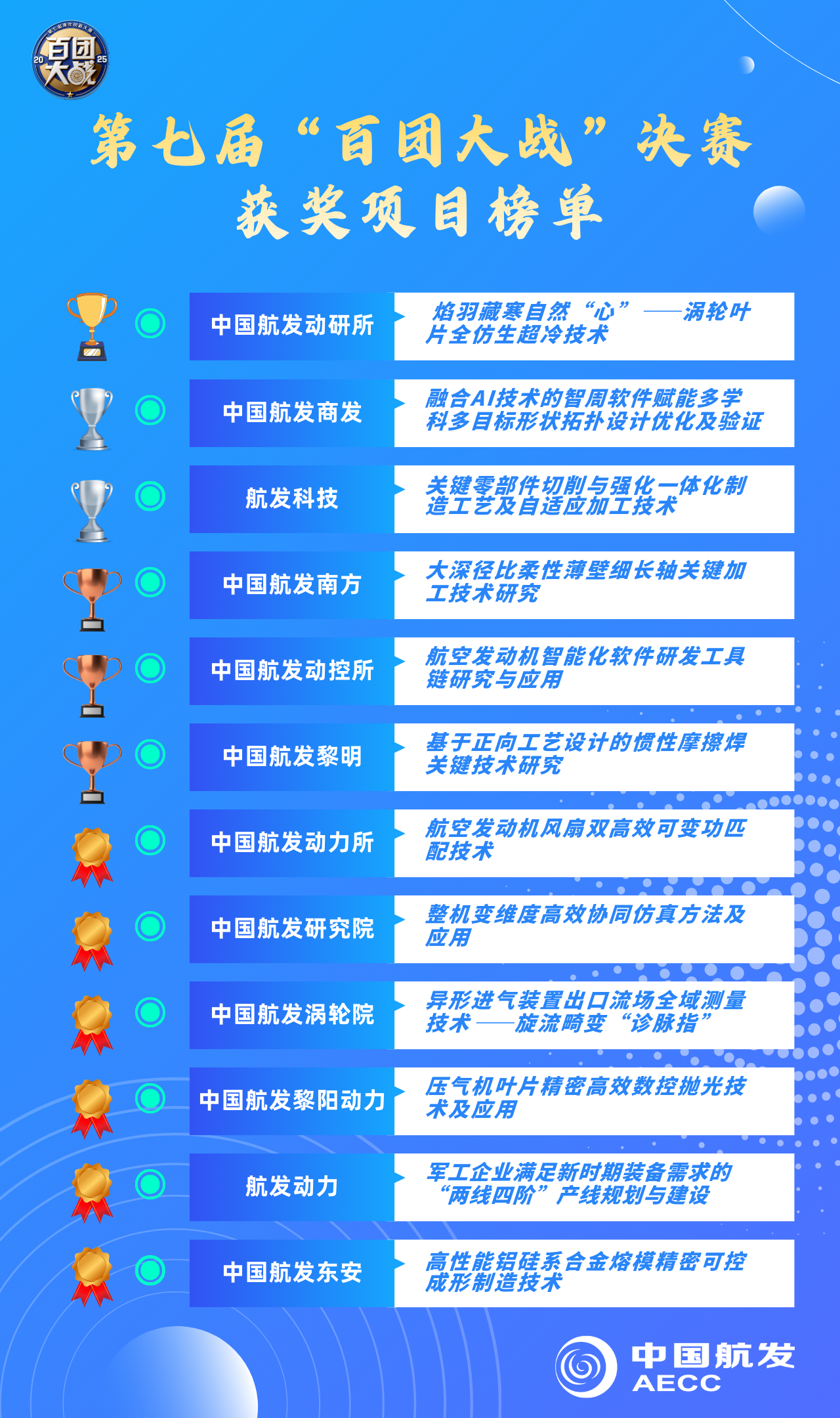 经过决赛现场评审,来自足球下注 动研所的《焰羽藏寒自然“心”——涡轮叶片全仿生超冷技术》项目脱颖而出,获得总决赛金奖;足球下注 商发、航发科技项目获总决赛银奖;足球下注 南方、足球下注 动控所、足球下注 黎明项目获总决赛铜奖;足球下注 动力所等单位项目获总决赛优秀奖。