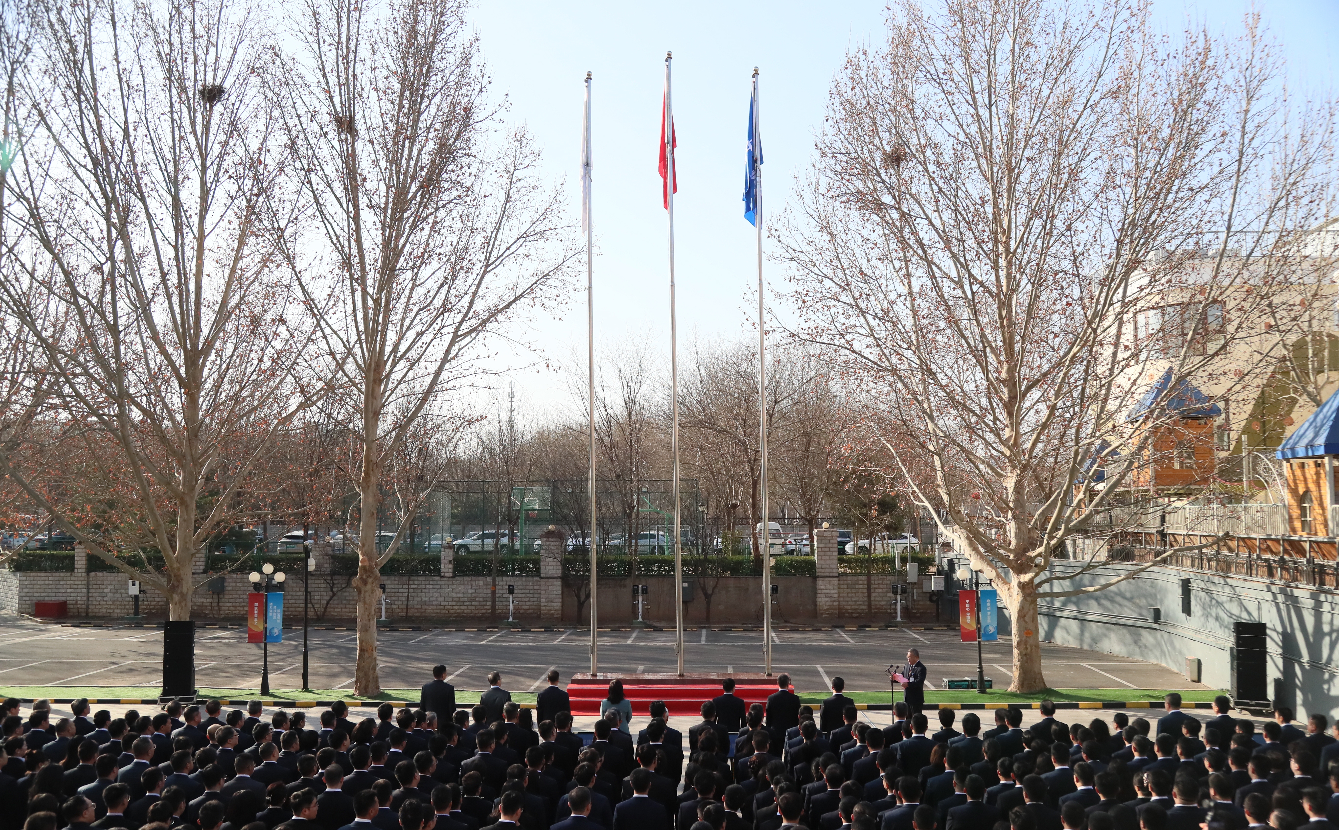 集团首席科学家,院士、高管及专项管理人员,驻集团纪检监察组,总部全体干部职工,足球下注 资产、财务、北京公司全体干部职工参加升旗仪式。
