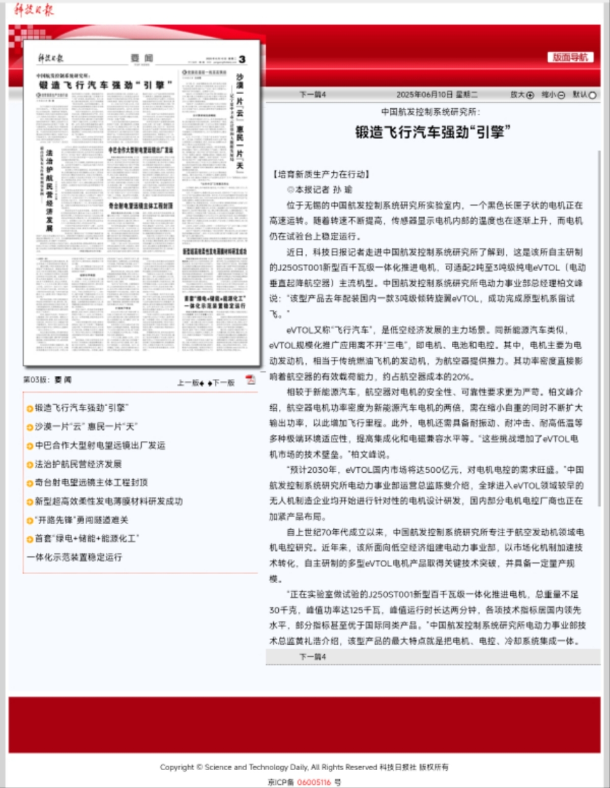 ——足球下注 控制系统研究所推进eVTOL电机技术研发